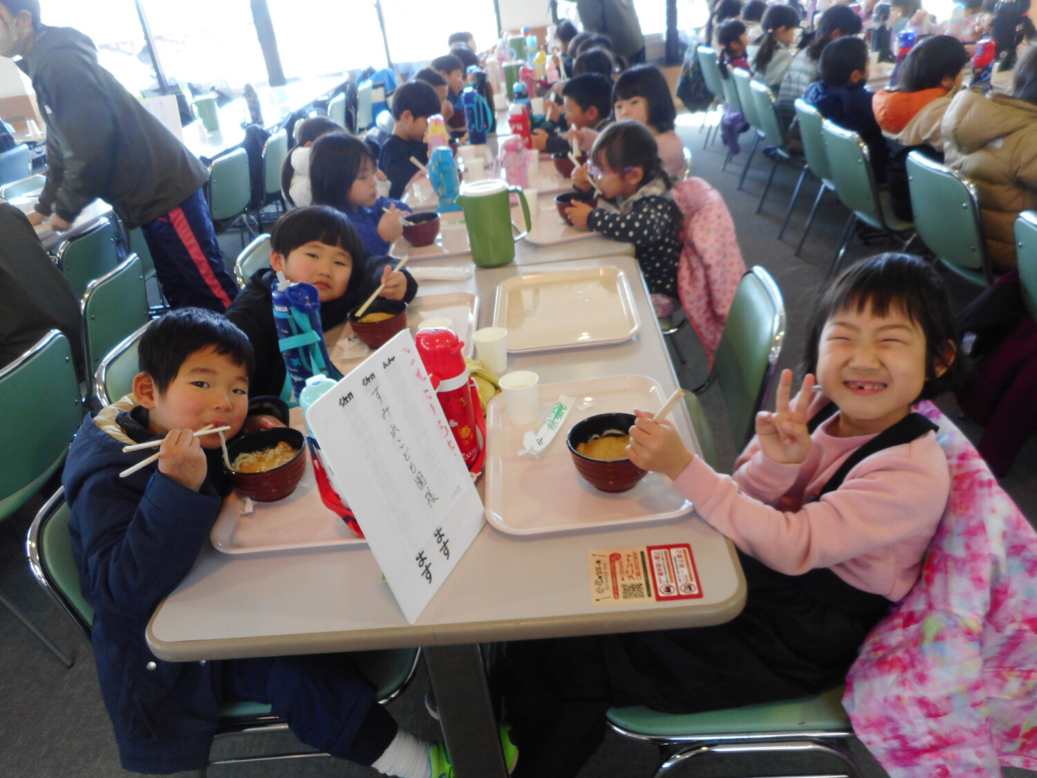 最初にお腹がすいたのでスキー場のレストランでうどんを食べました(´~`)あったかいうどん美味しいね~😊ごちそうさまでした!