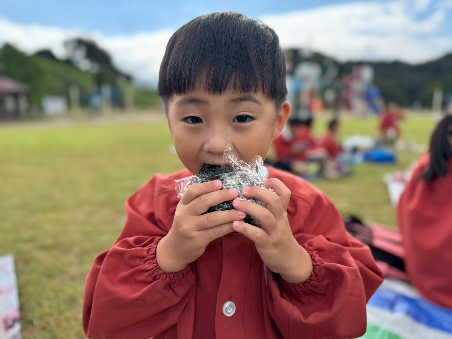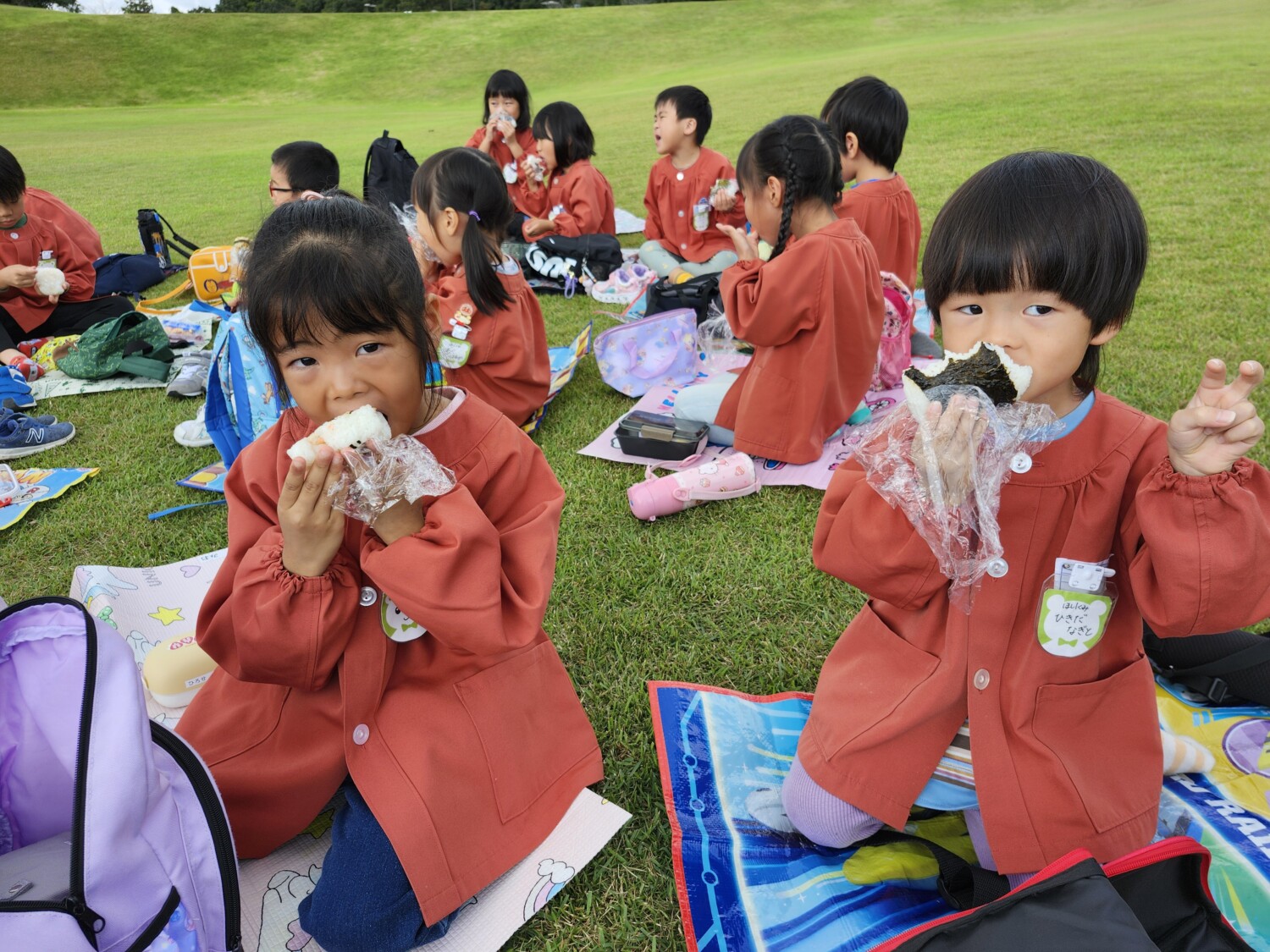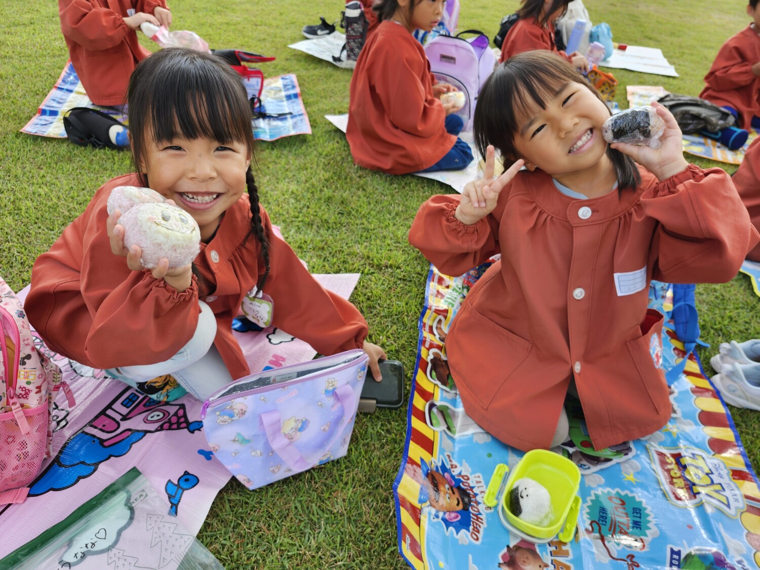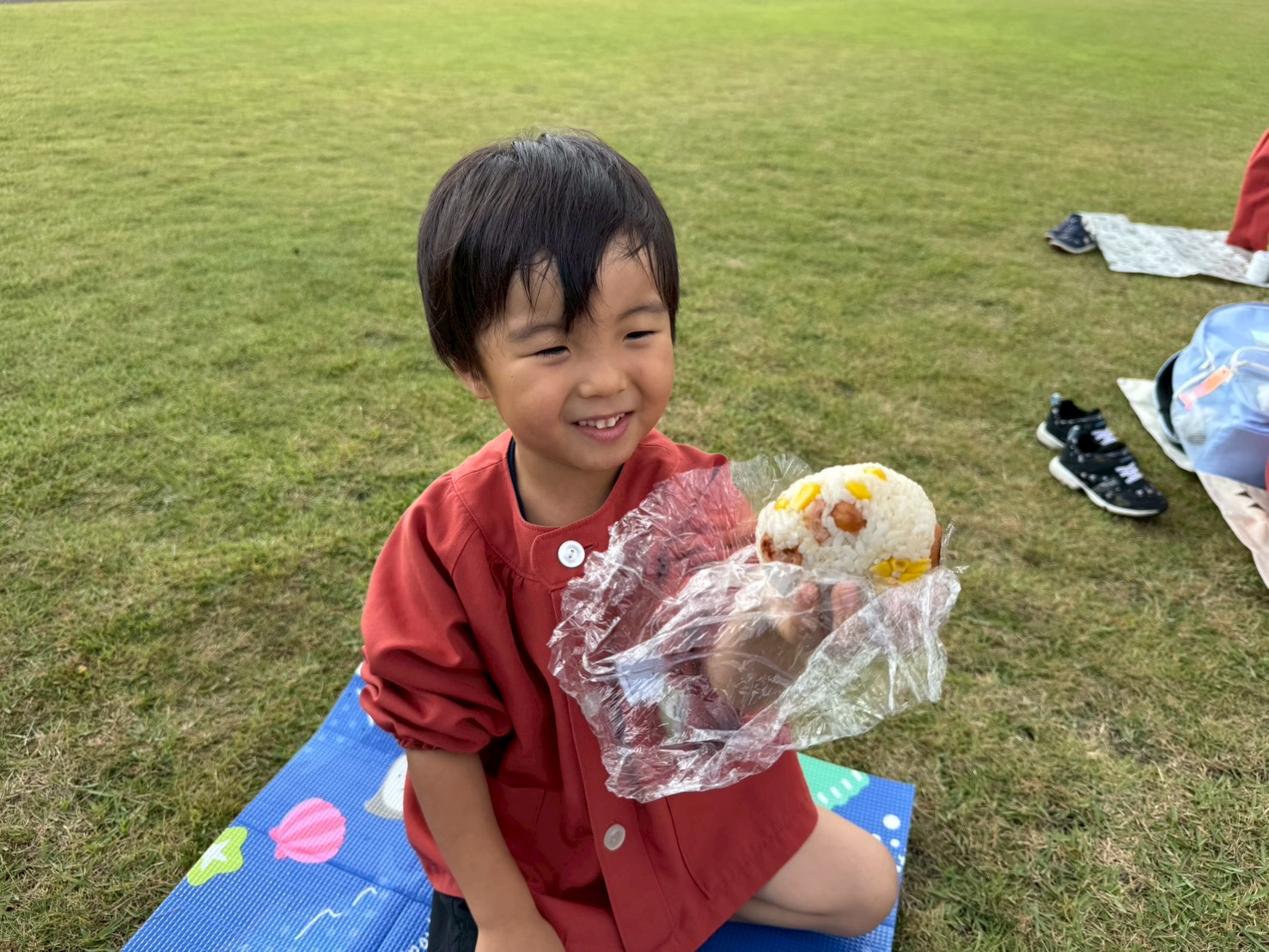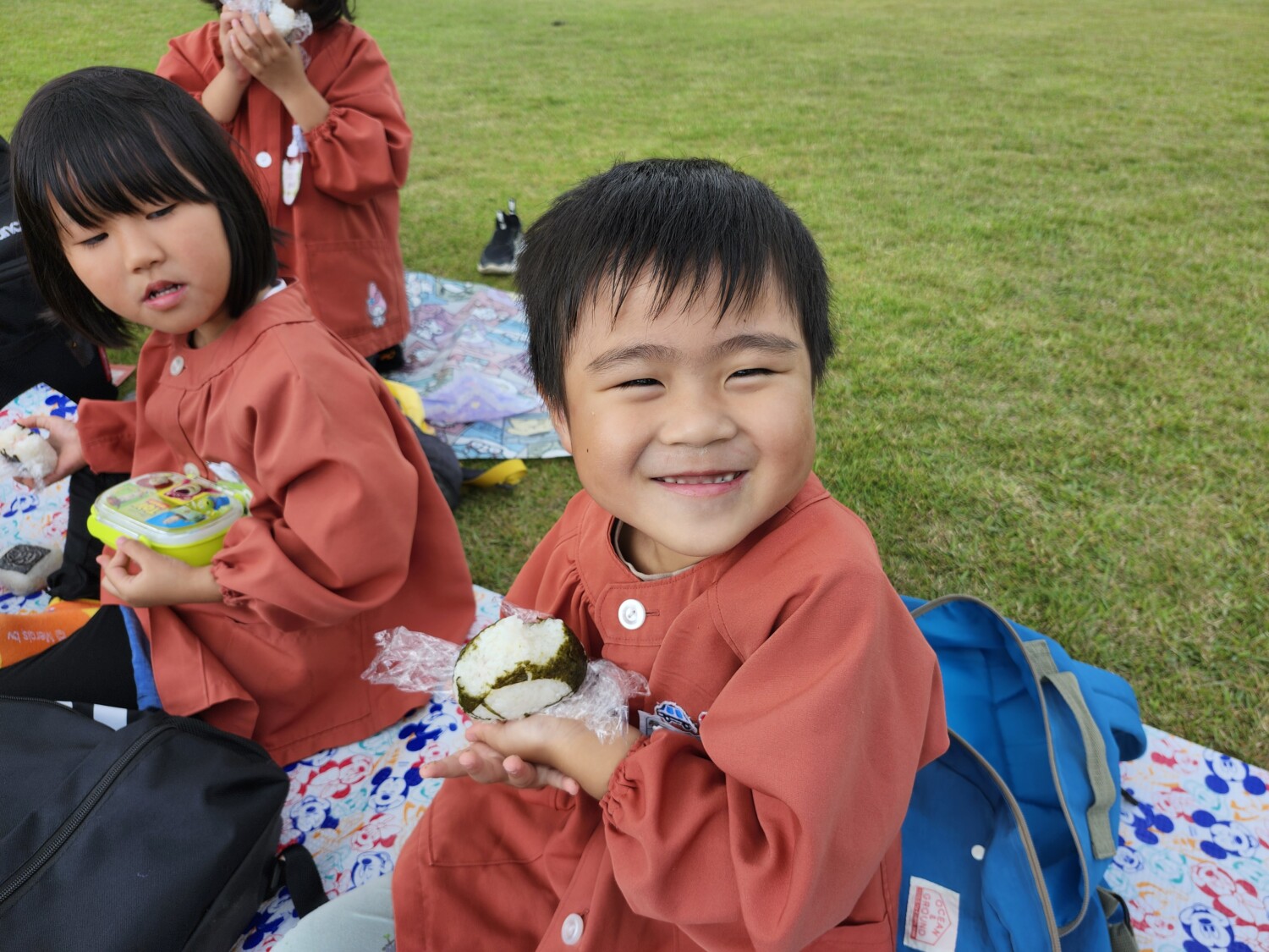 いっぱい歩いてお腹もペコペコ!!みんなでおにぎり🍙を食べました!