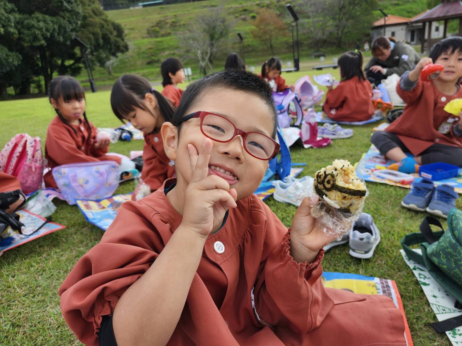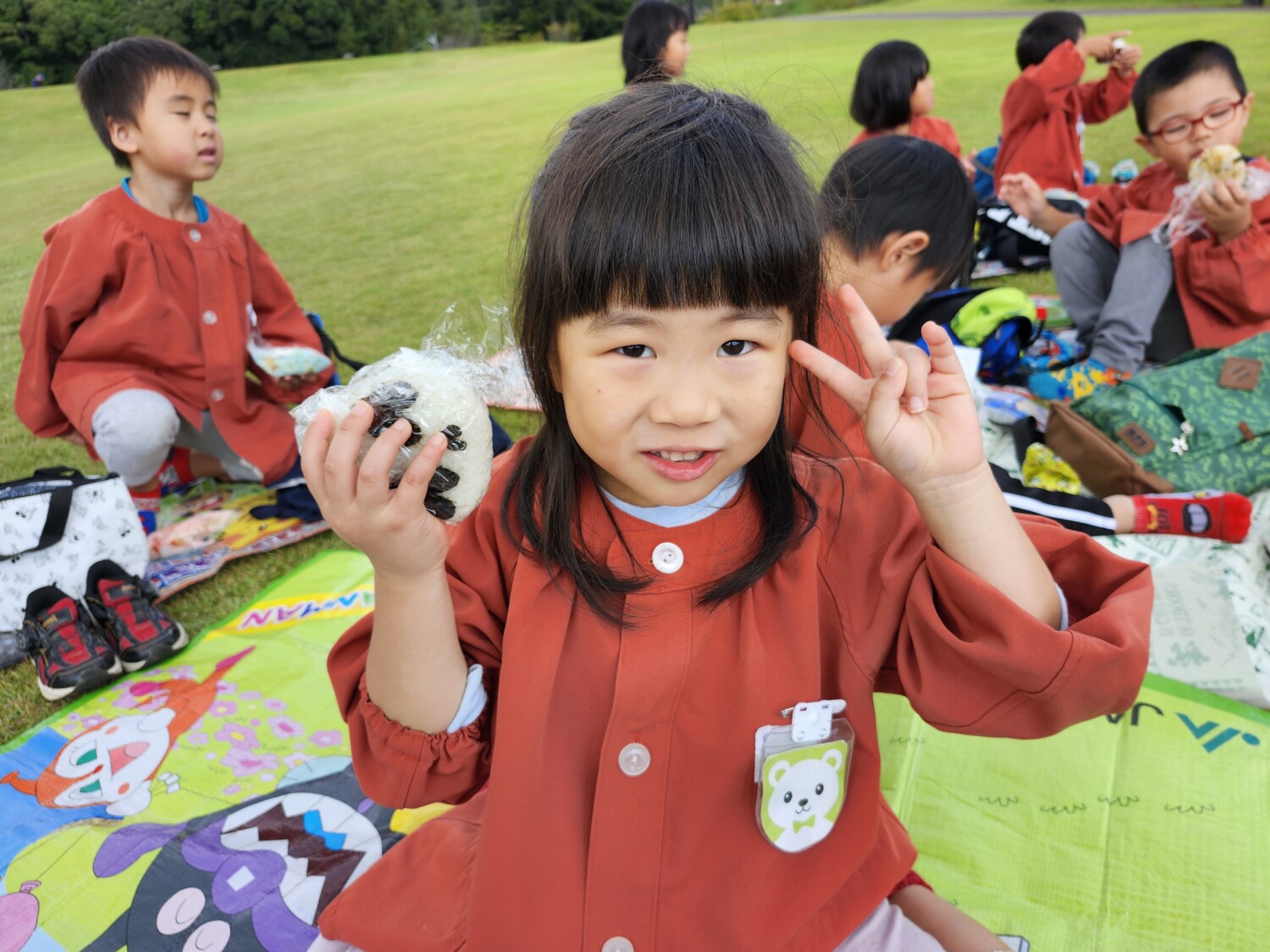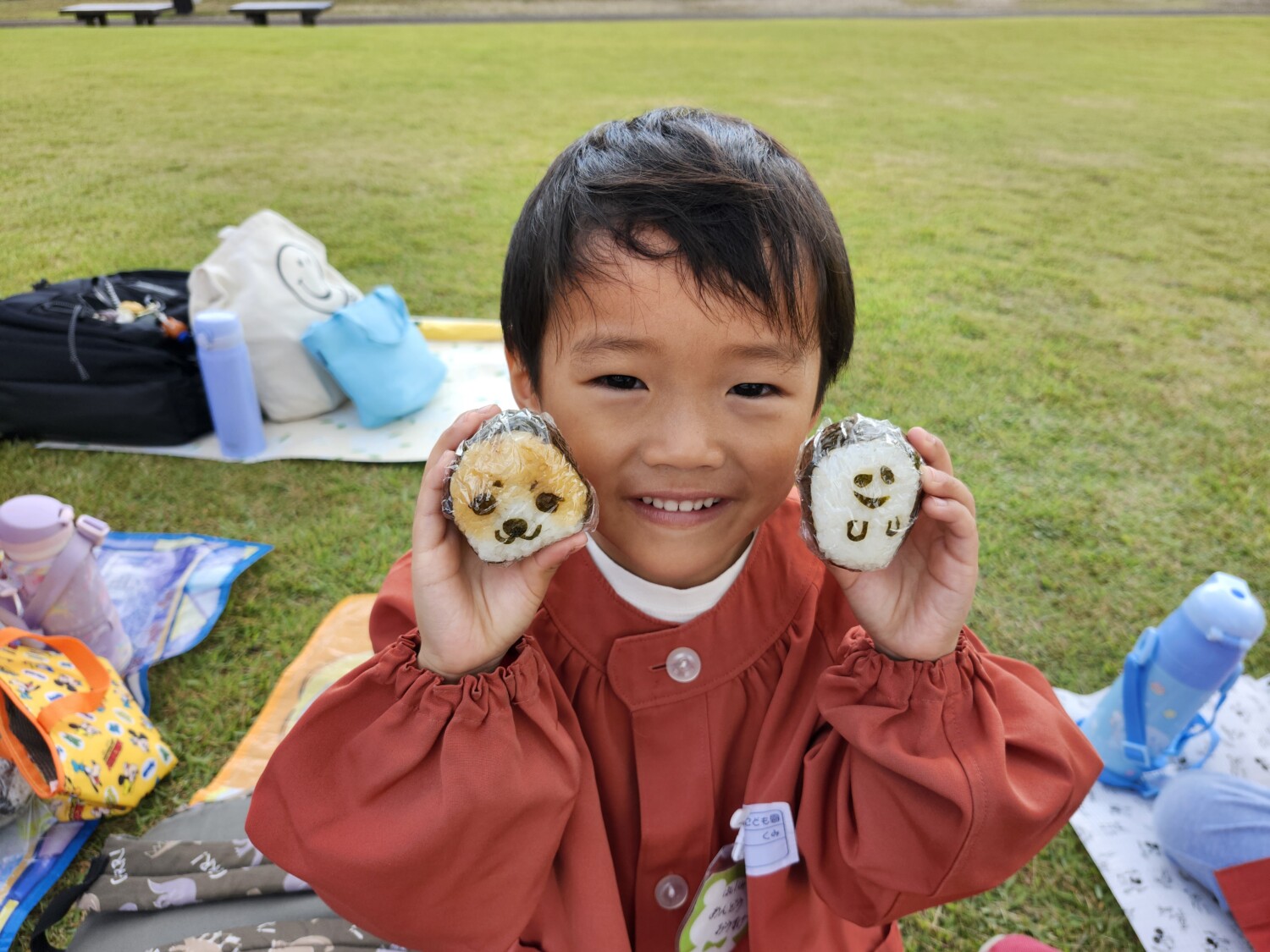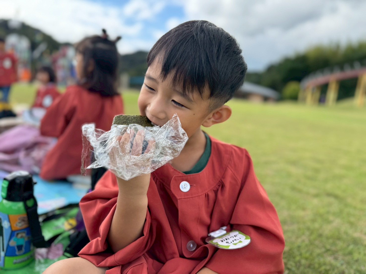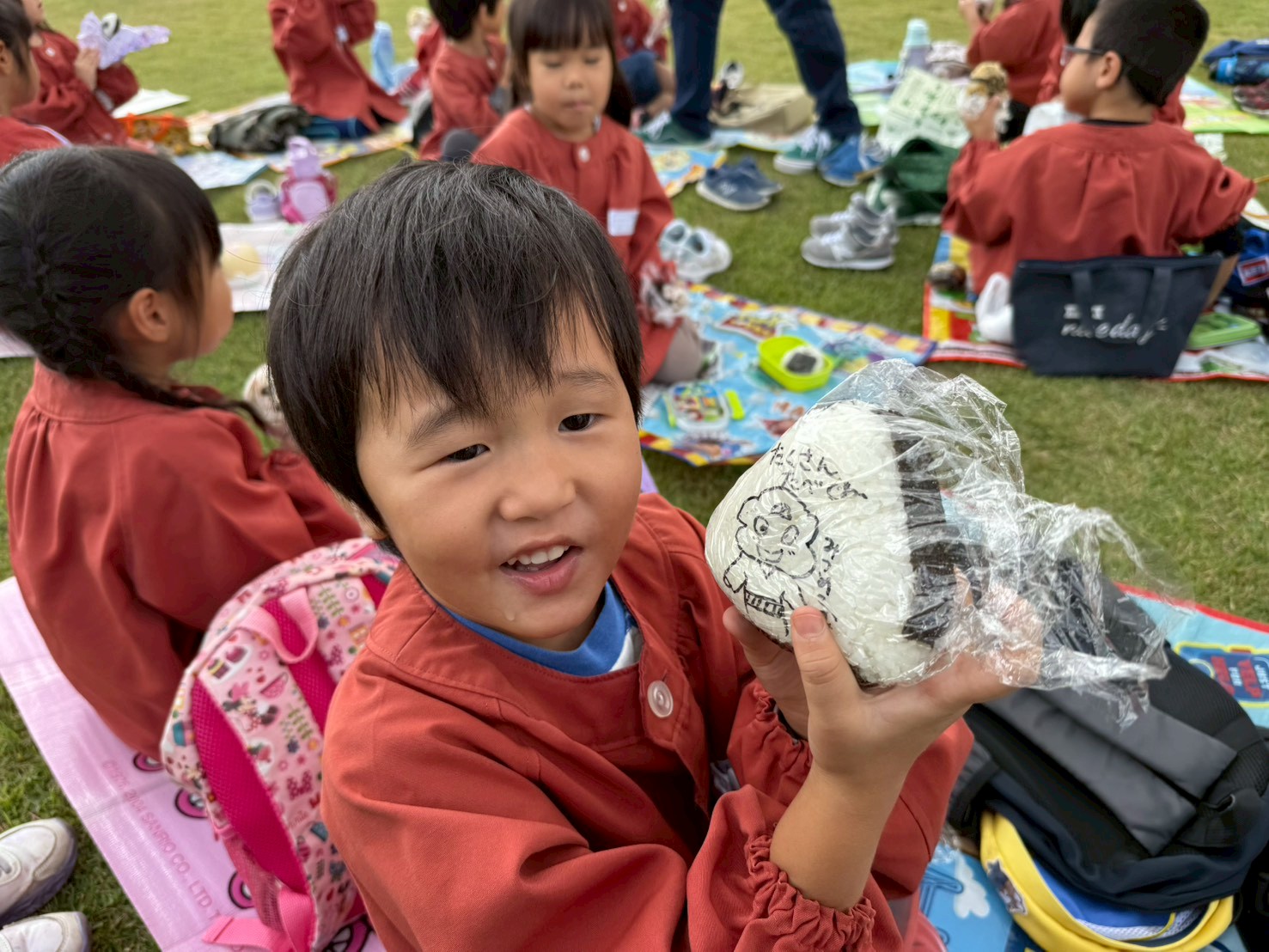 いっぱい歩いてお腹もペコペコ!!みんなでおにぎり🍙を食べました!