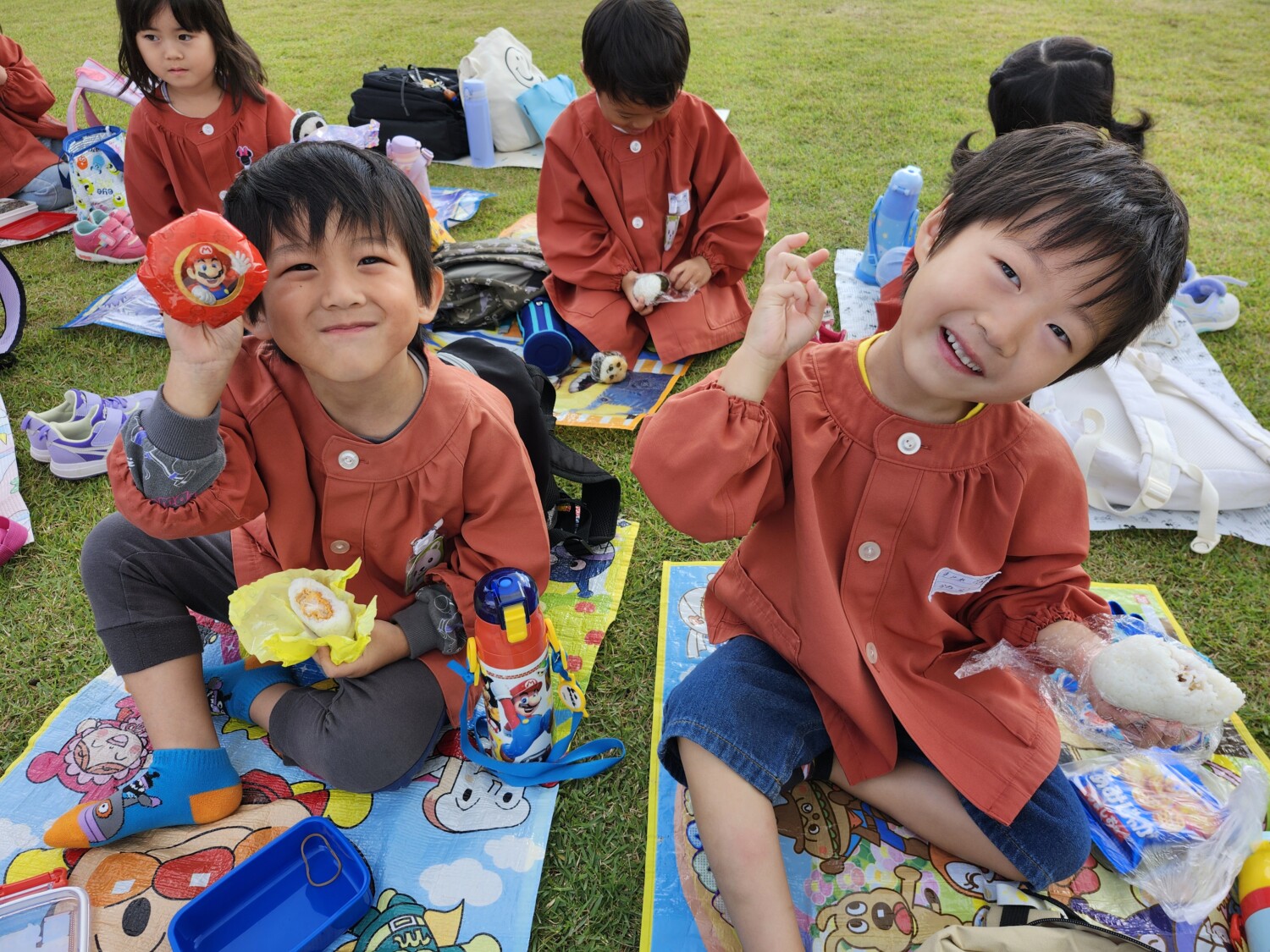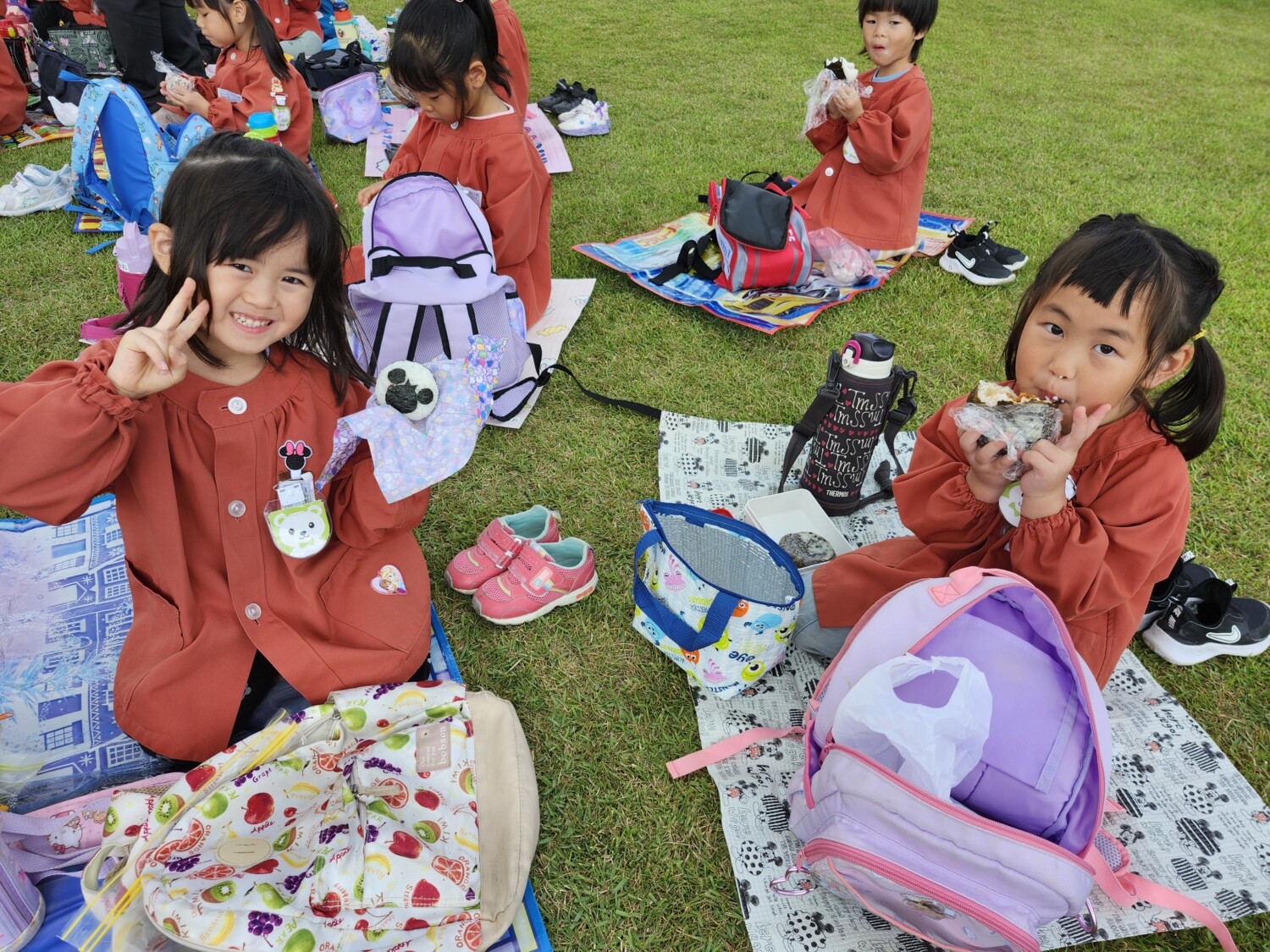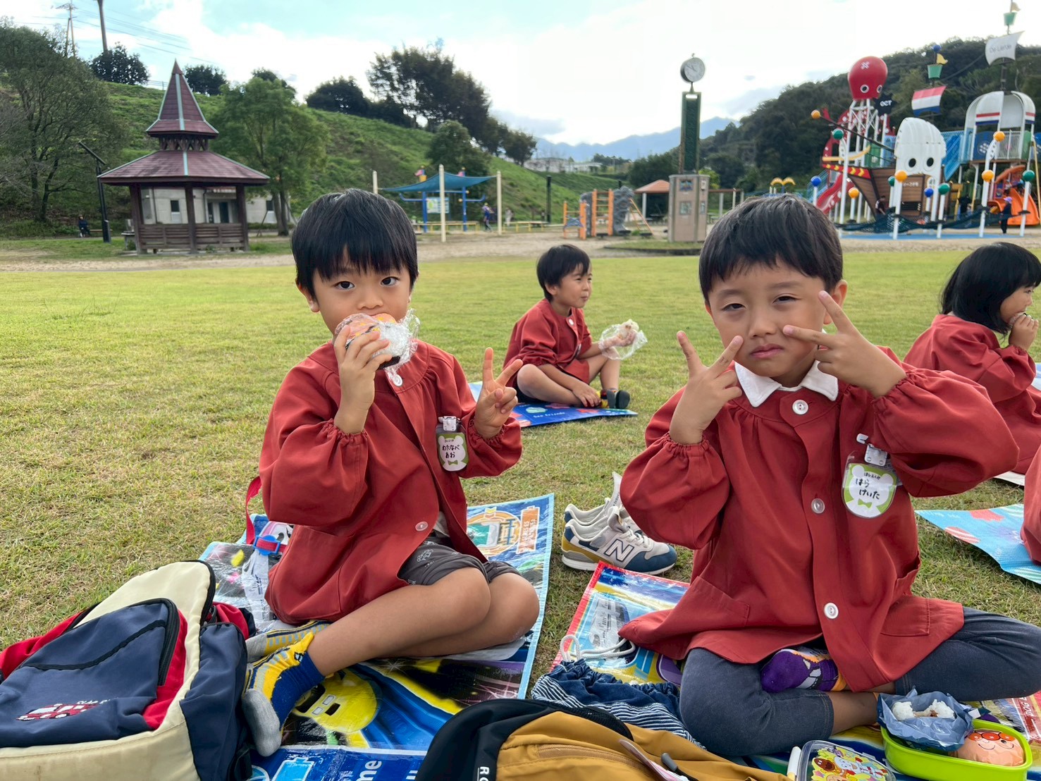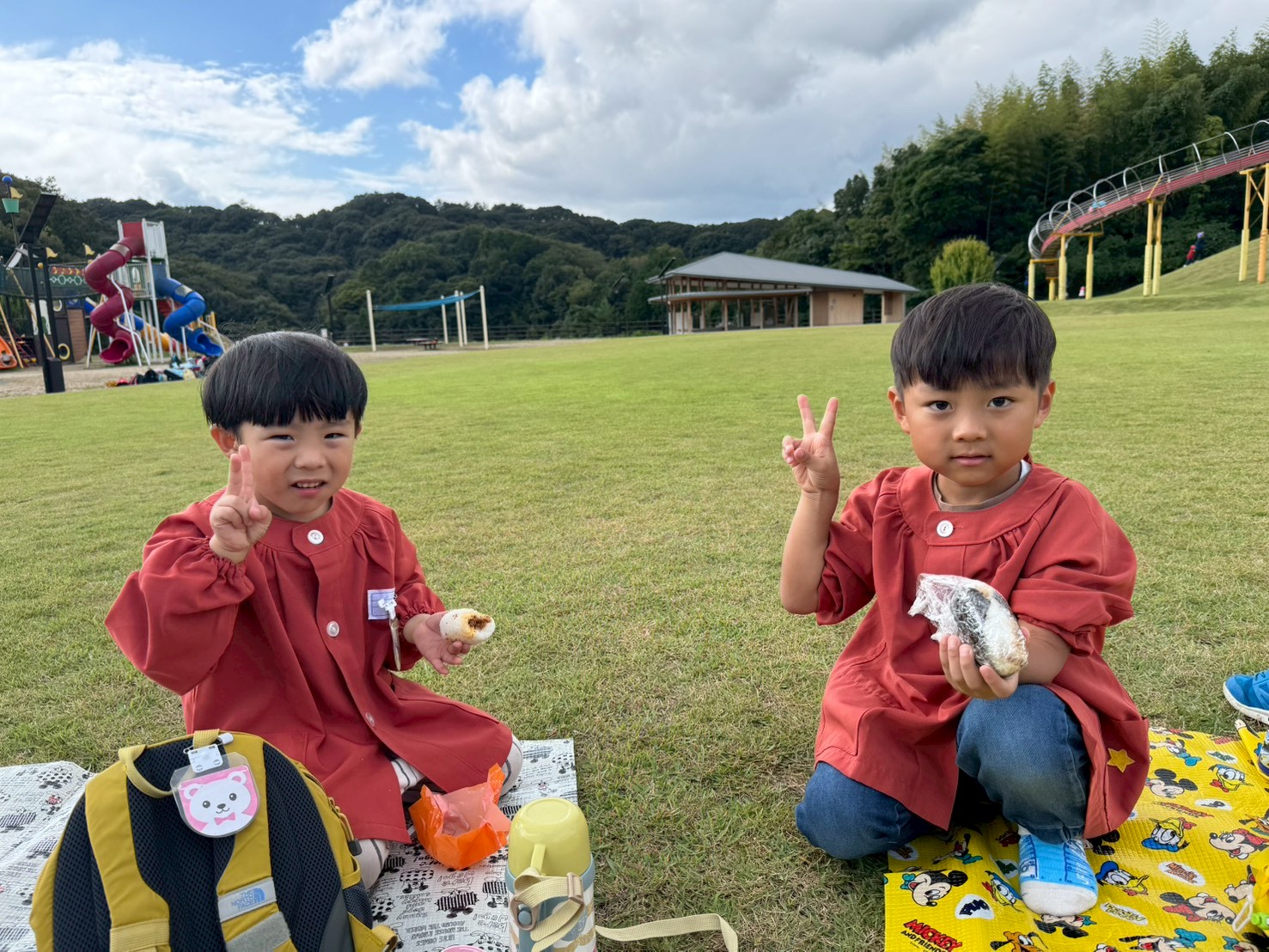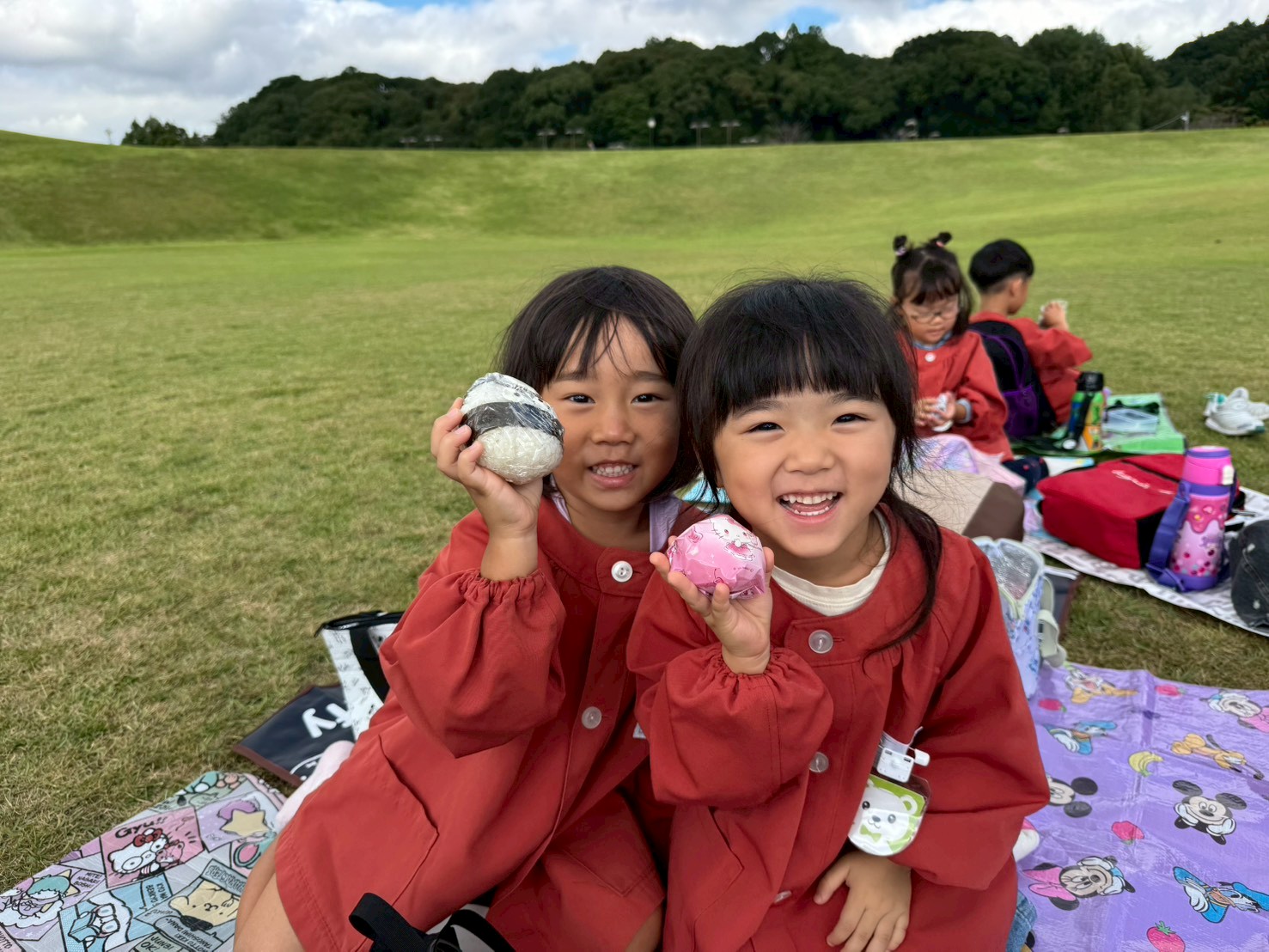 いっぱい歩いてお腹もペコペコ!!みんなでおにぎり🍙を食べました!