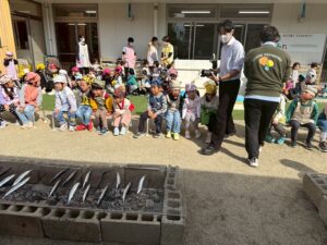 園庭にブロックでできた炭火の焼き場🔥
