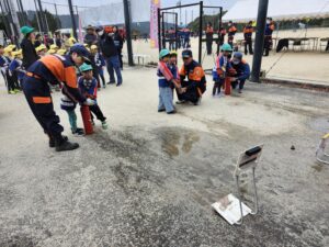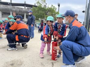消火器の使用方法を教えてもらいながら上手に的をねらえたよ(*^^)✨