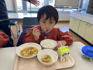 待ちに待った給食です!いただきまーーす!