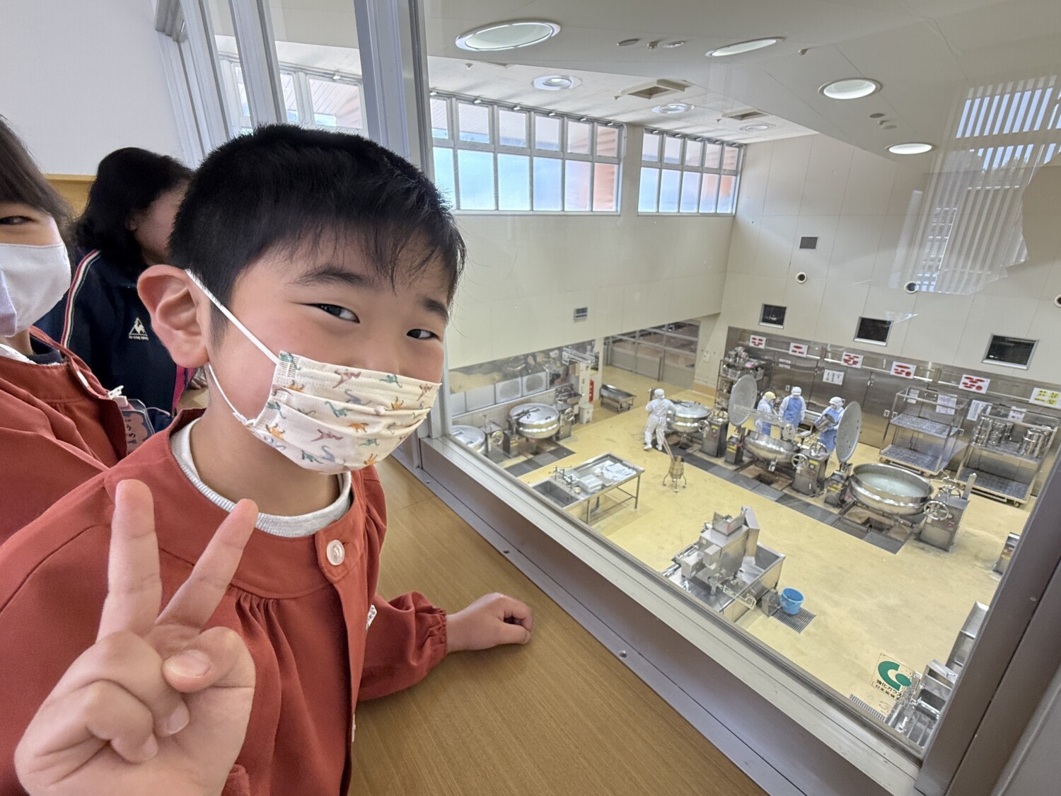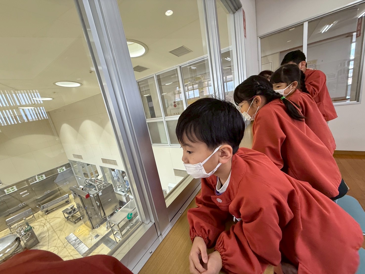 中には大きな機械がいっぱいあり、「あれ、なに?」や「入れ物に小学校の名前が書いてる!」など給食センターの先生に質問をしたり、みんな興味津々で見ていました✨