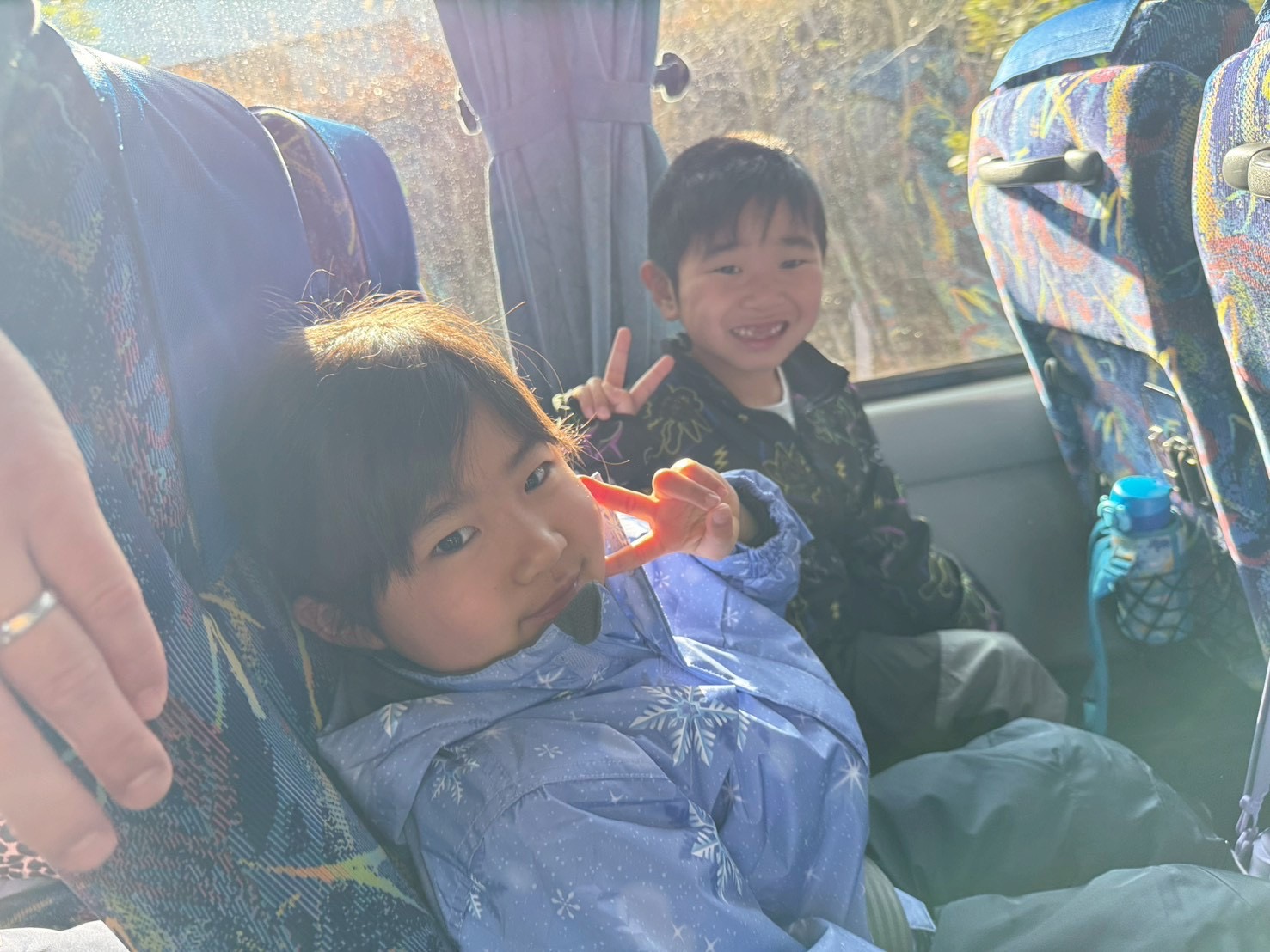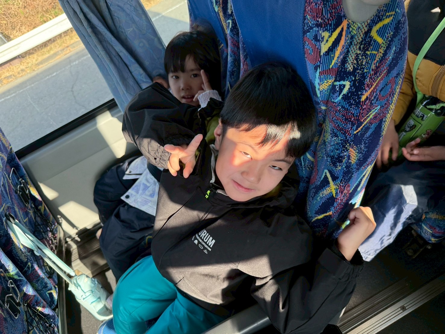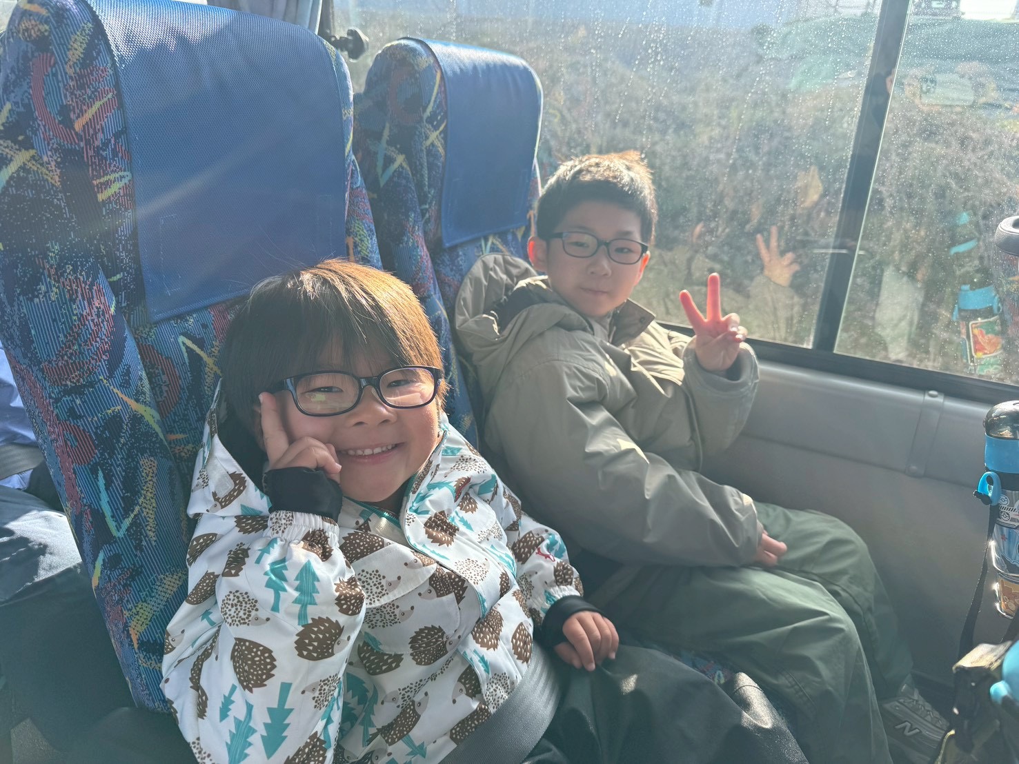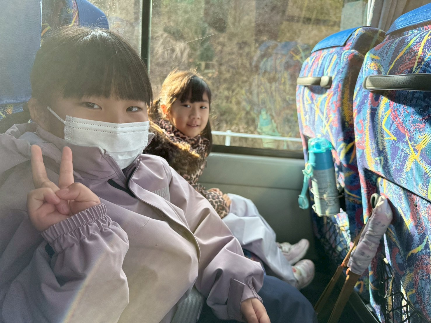 バスの中では、お友達とスキー場で何をするのか盛り上がっていました😊