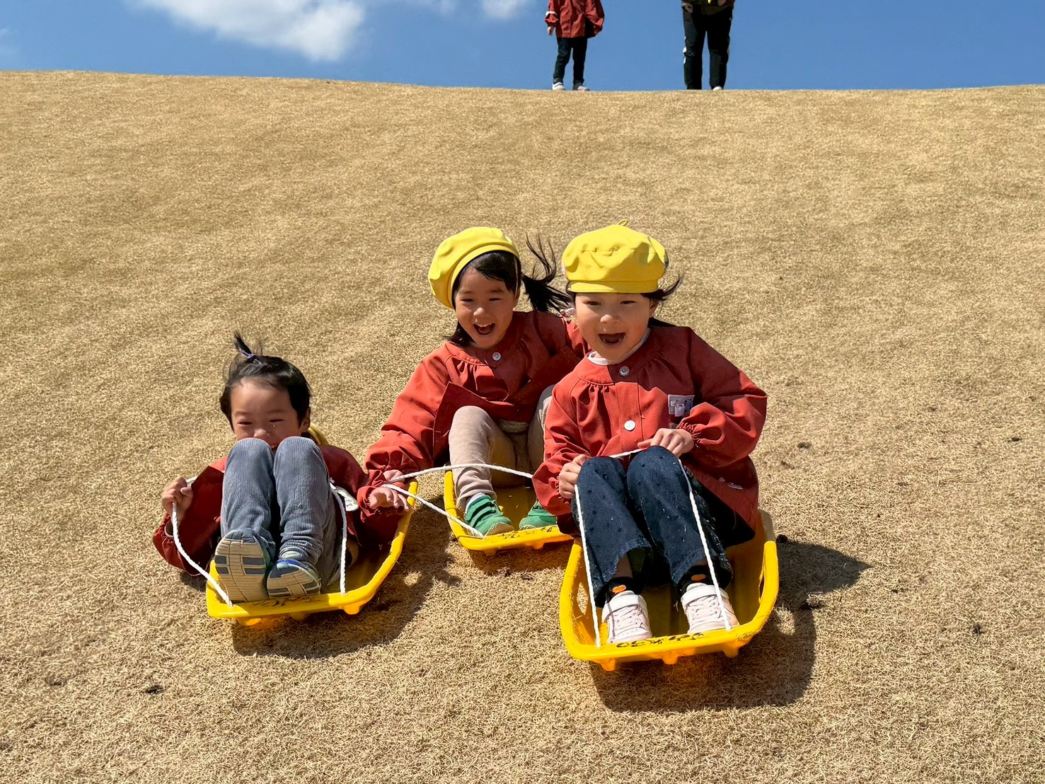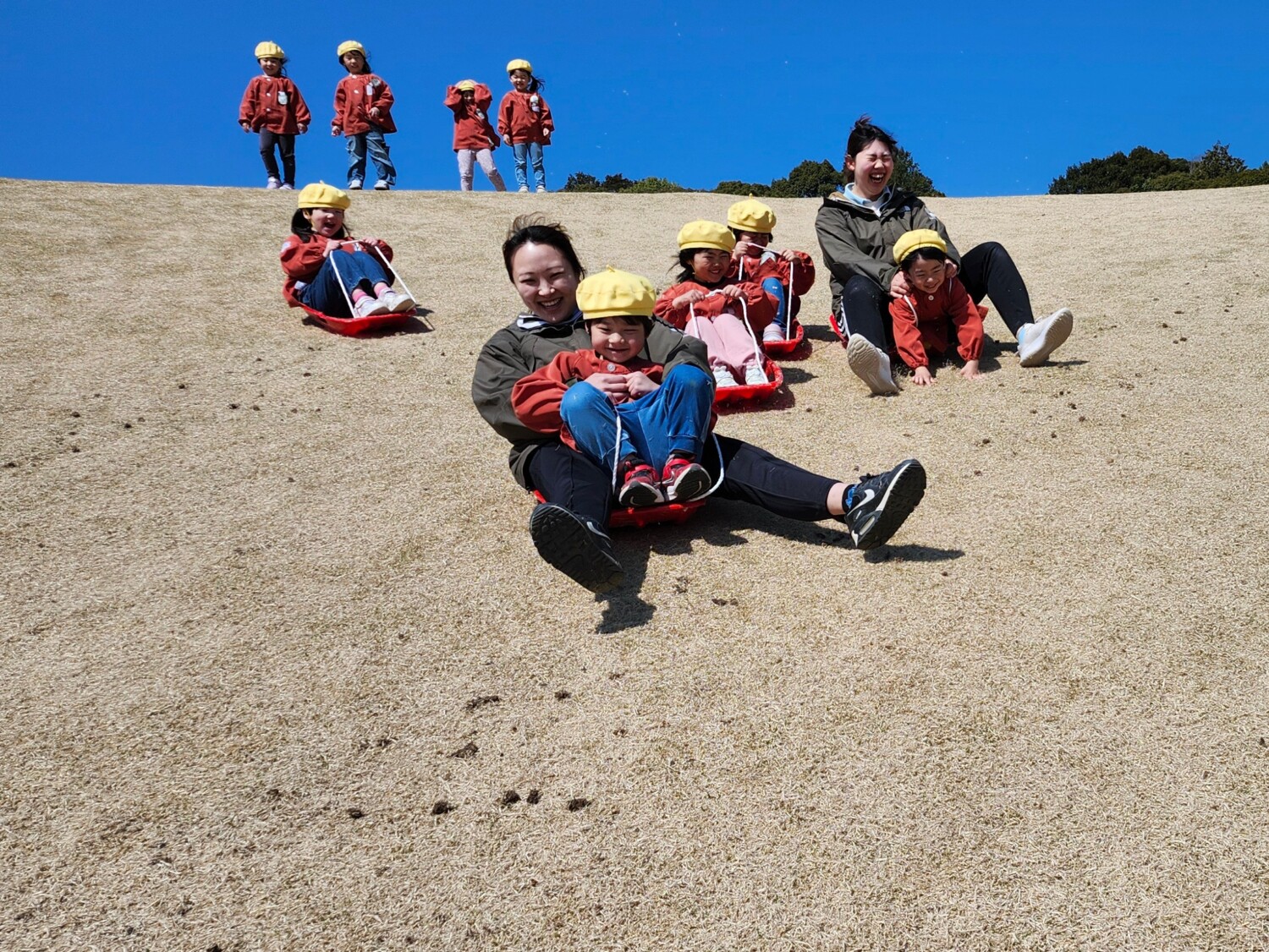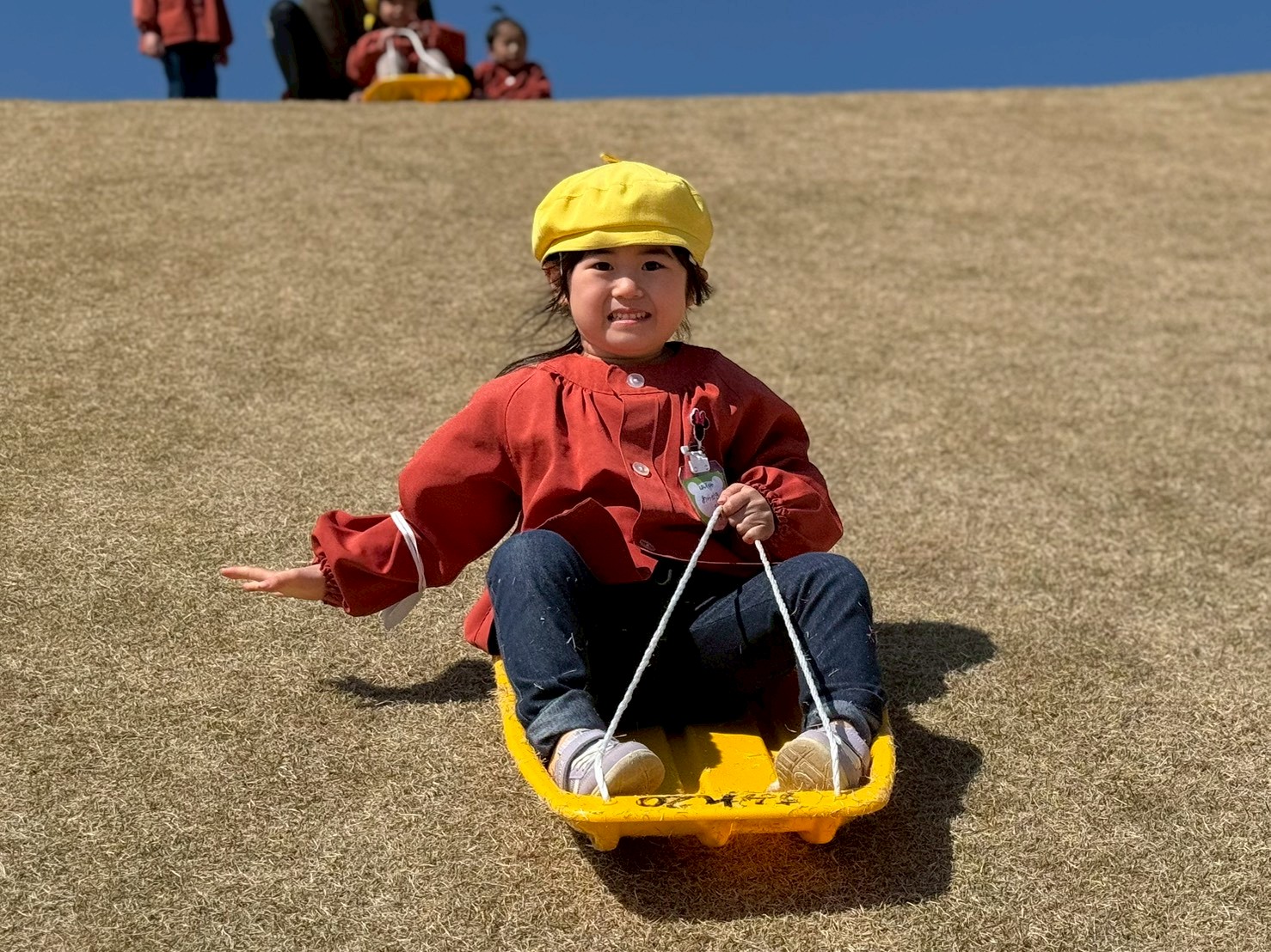 食べ終わった後は草スキーをして遊んだよ(^^)🎵