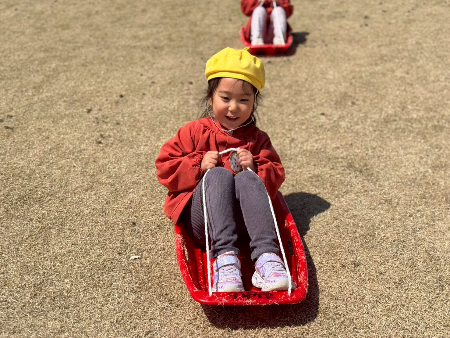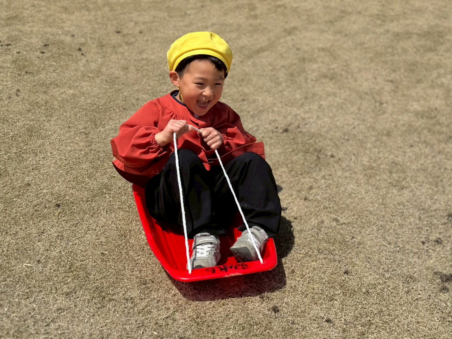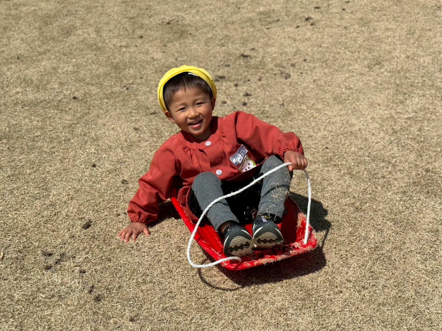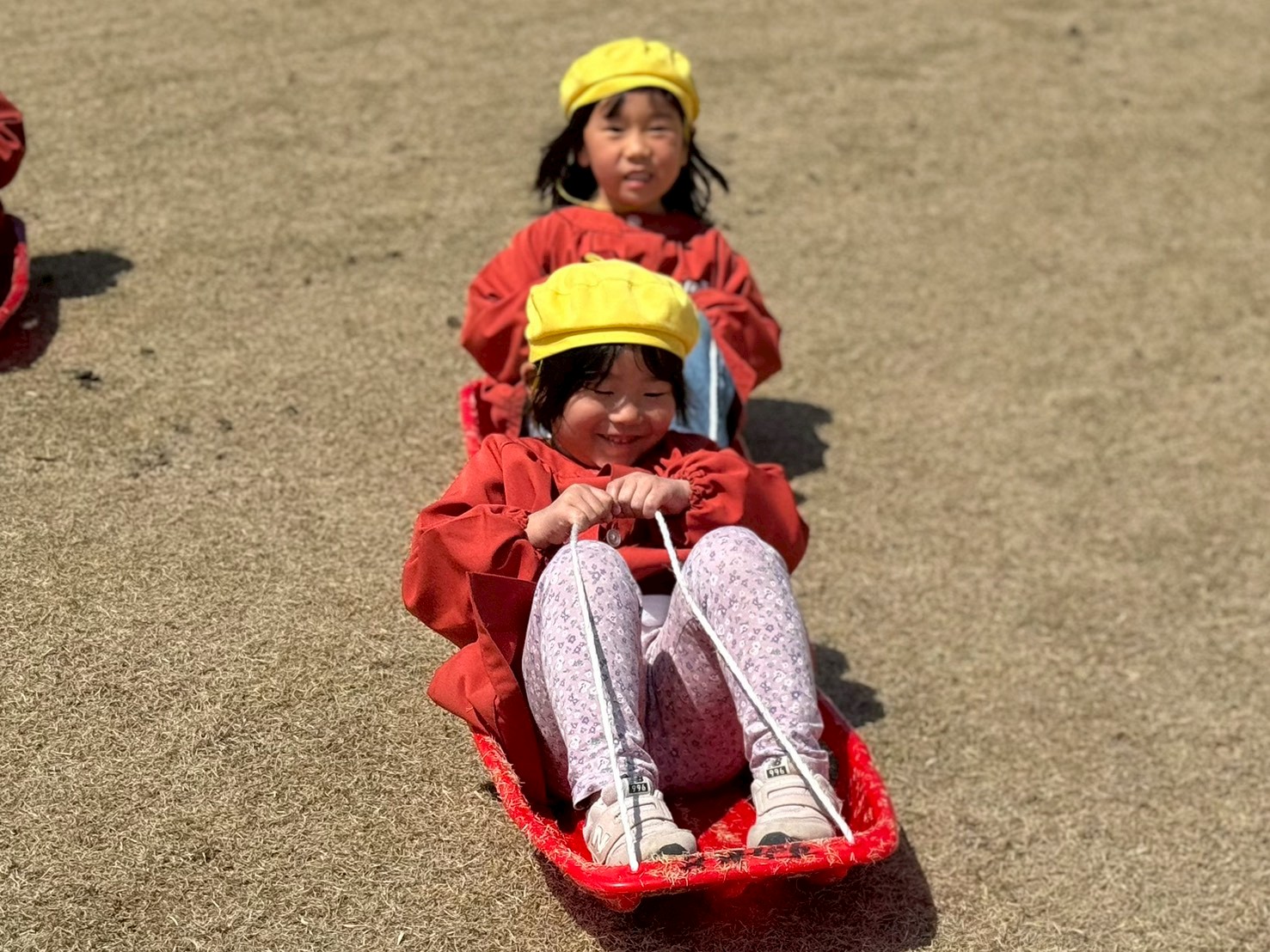 食べ終わった後は草スキーをして遊んだよ(^^)🎵