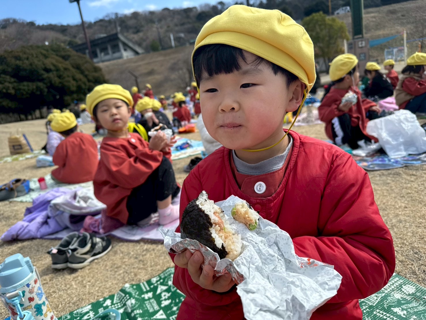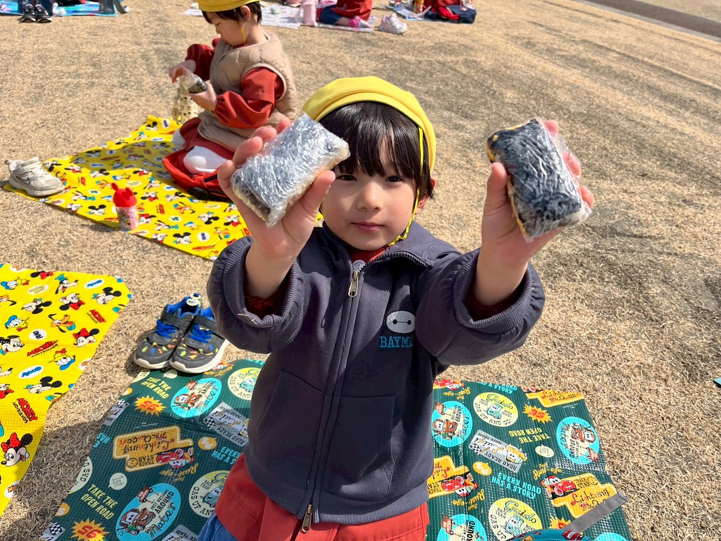 思いっきり遊んだ後は、お家の方が作ってくれた″ばくだんおにぎり″🍙を食べました✨