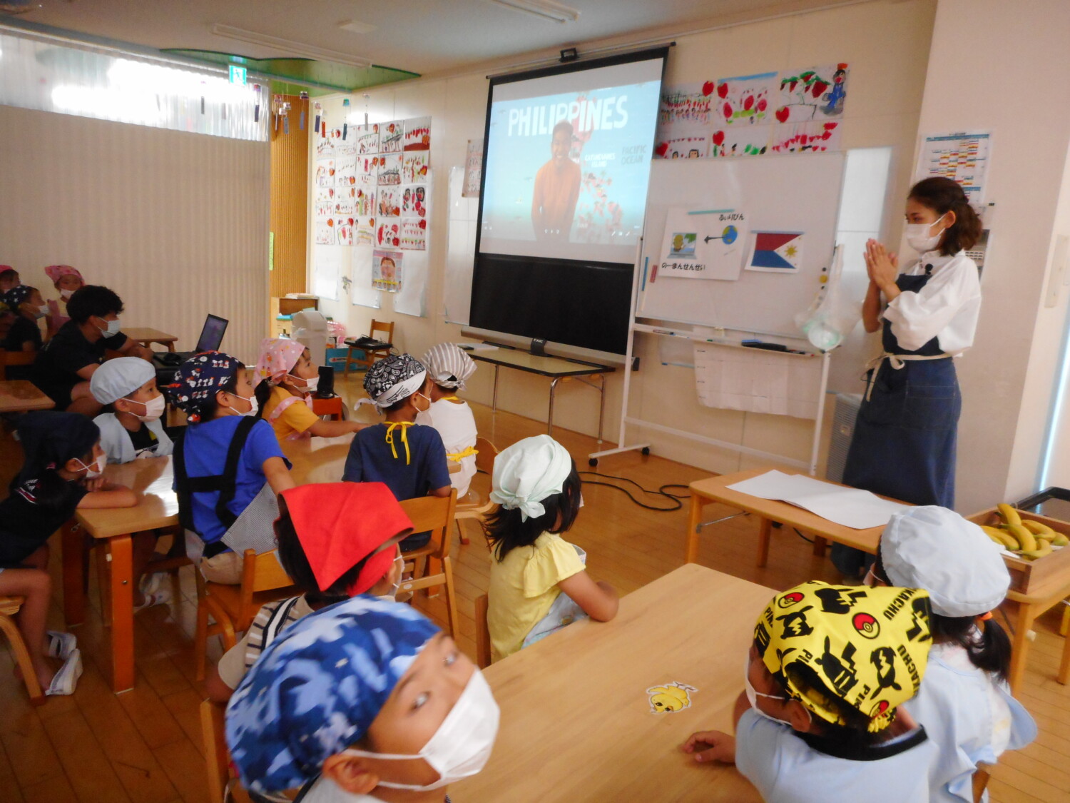 最後にみんなでバナナを食べました。「かいんたよ~😊」(フィリピン語)