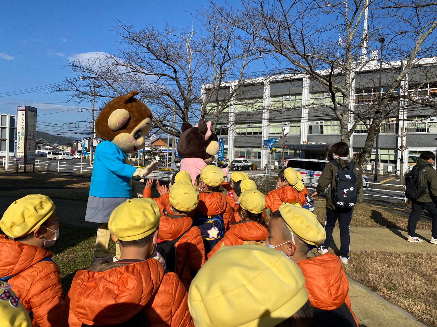 警察署前では、警察署の方と”パットくん”と”ロールちゃん”が出迎えてくれたよ(*^-^*)