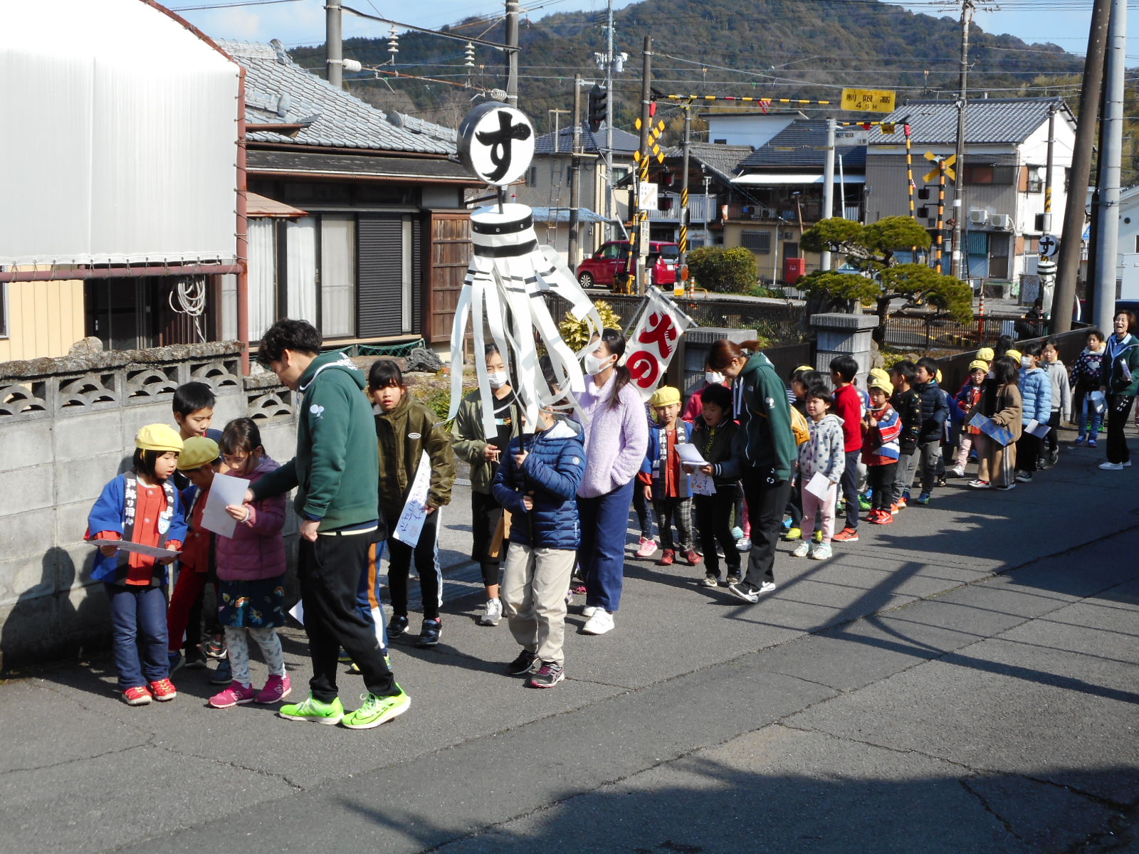 ”マトイ”を持って「カチカチカチ!」拍子木を鳴らし地域を回り、子ども達の手作り”防火ポスター”を配りました(^▽^)/